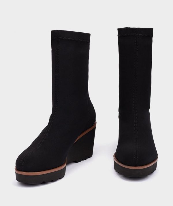 Botín de tejido elástico. Los botines Hita están confeccionadoscon nuestro popular tejido elástico para un ajuste óptimo. Estemodelo básico y atemporal se convertirá en un imprescindible de tuarmario. Altura tacón: 7 cm. Alturaplataforma: 2 cm. Ancho de caña: 24 cm. Alto de caña:21 cm. Modelo de la colección Weekend by Pedro Miralles.