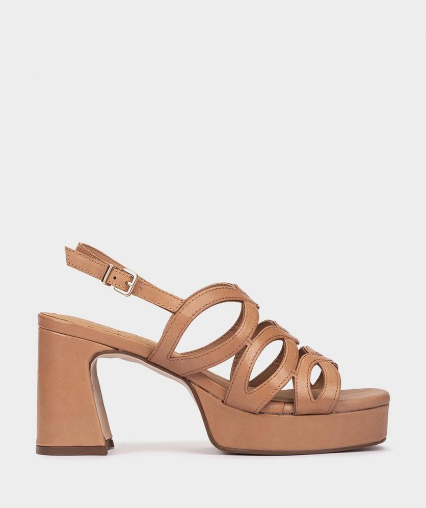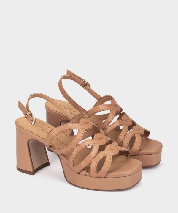 Sandalias de tacón con plataforma de piel en color caramelo. Las sandalias Bolzano tienen un estilo único que envuelve el pie de una forma muy elegante. Confeccionadas con un tacón midi con diseño geométrico. Estas sandalias son la combinación perfecta entre comodidad y estilo. Altura tacón: 9 cm. Altura plataforma: 3 cm.