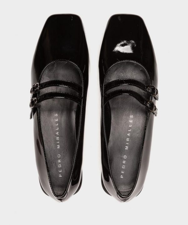 Bailarinas de charol negras. Estas bailarinas son un básico esta temporada, que destacan por su elegante doble hebilla sobre el empeine. Combínalas con faldas,vestidos o pantalones y crea tus mejores looks con ellas; sin duda serán un imprescindible en tu armario que querrás lucir allá donde vayas. Altura tacón: 2 cm.